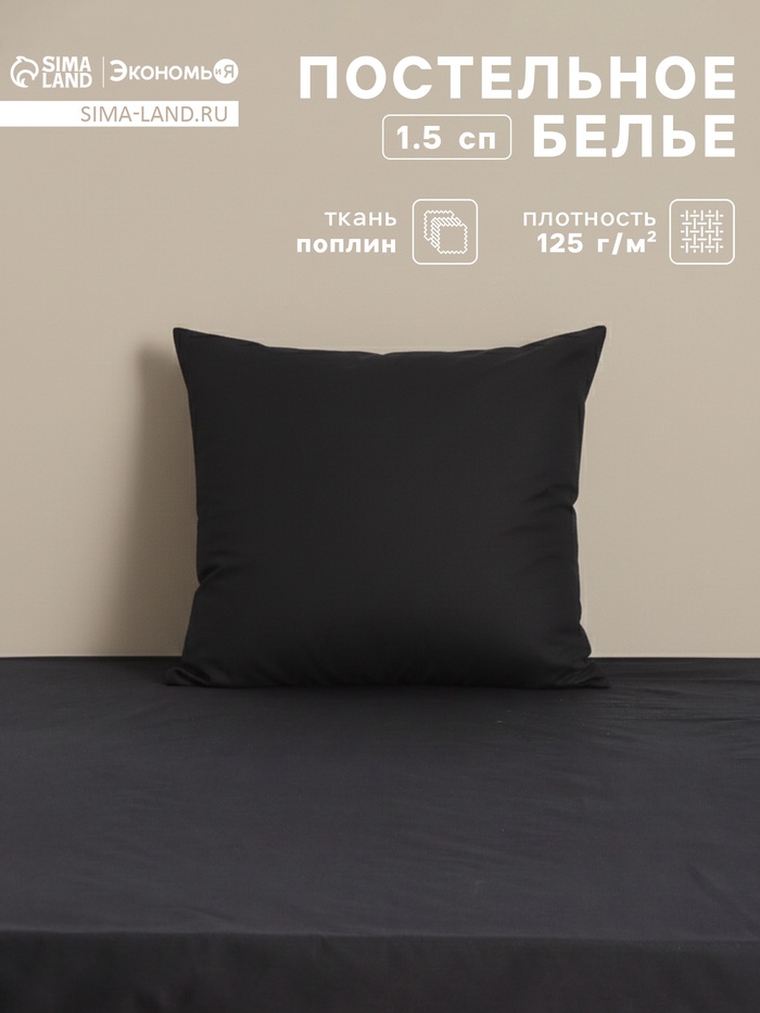 Постельное бельё 1.5-спальное «Экономь и Я», поплин, чёрное