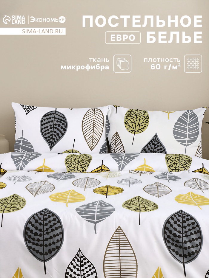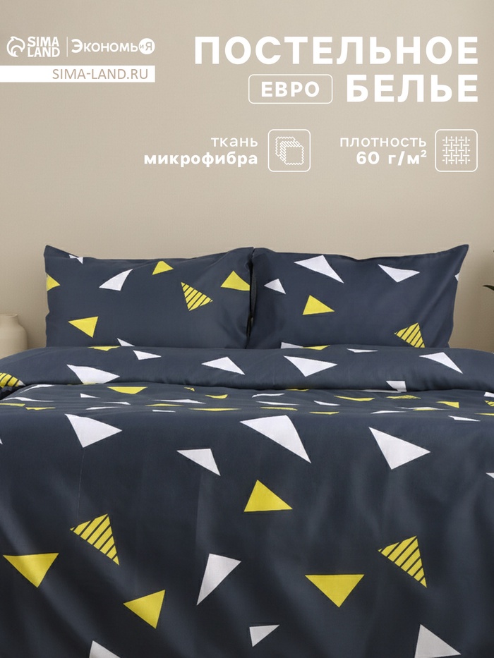 Постельное бельё евро «Экономь и Я», микрофибра 60 г/м², чёрное, белое