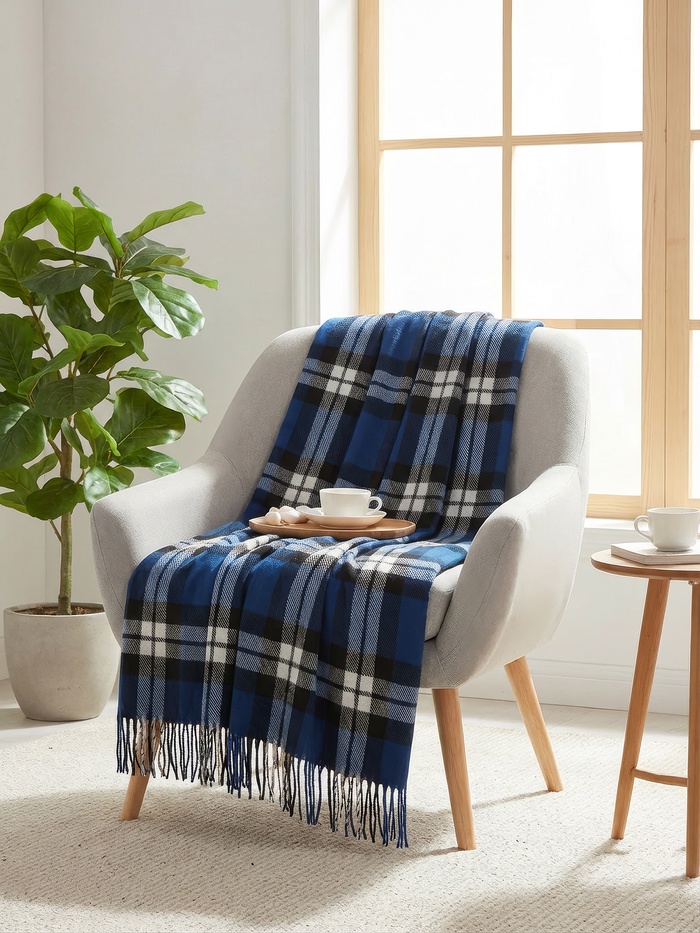 Плед «Элис» 150×200 см, синий/белый