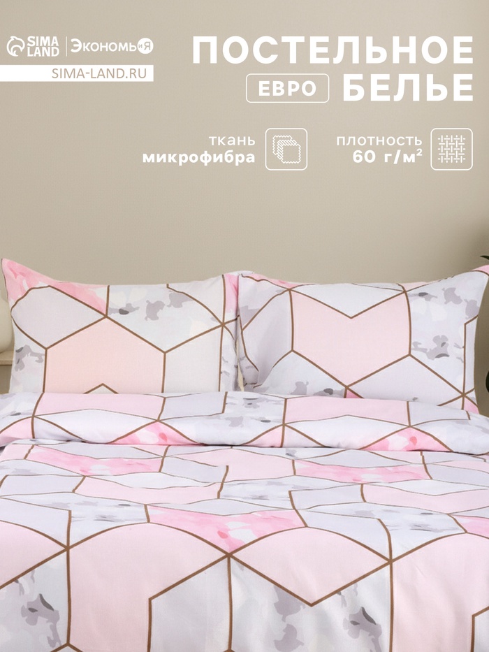 Постельное бельё евро «Экономь и Я», микрофибра 60 г/м², розовое, белое