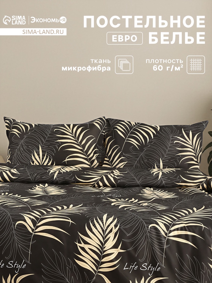 Постельное бельё евро «Экономь и Я», микрофибра 60 г/м², чёрное