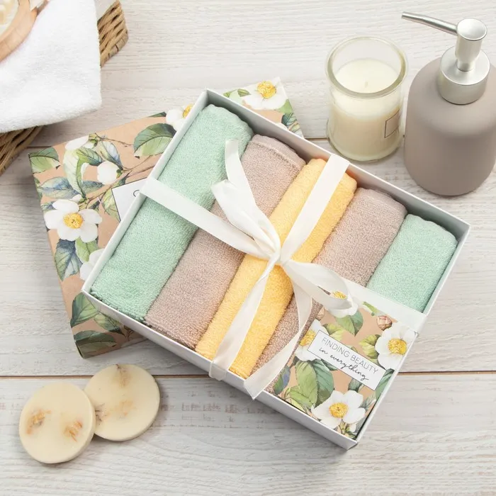 Набор махровых салфеток "Уголок счастья" 30х30 см -5шт, 100% хлопок, 340гр/м2