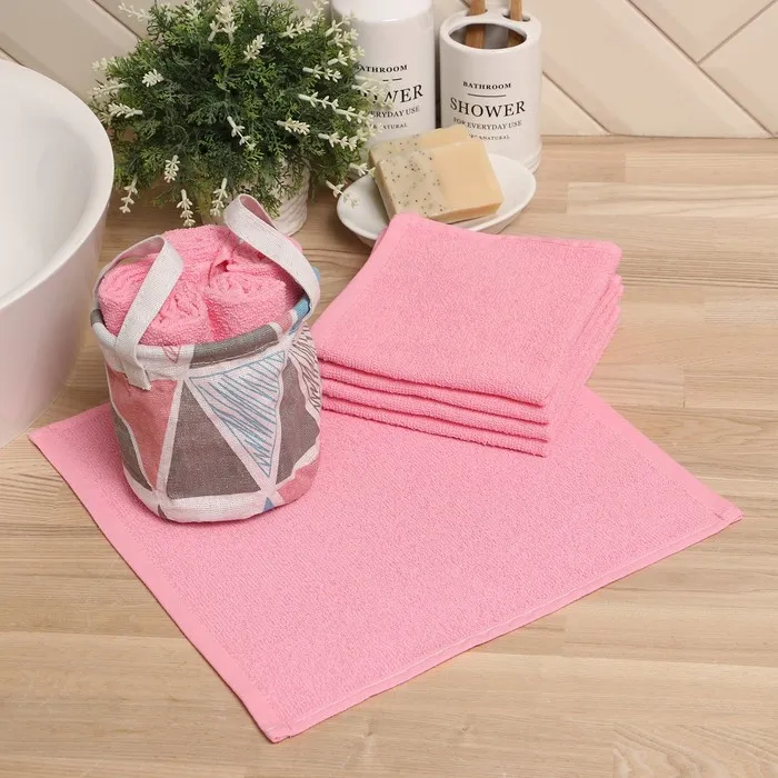 Набор махровых декоративных салфеток Этель, 30х30см-6шт, цвет бежевый,розовый 100% хлопок