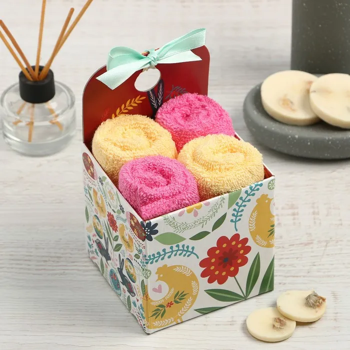 Набор декоративных махровых салфеток «Зайцы» 30×30 см - 4 шт., 100% хлопок, 340 г/м²