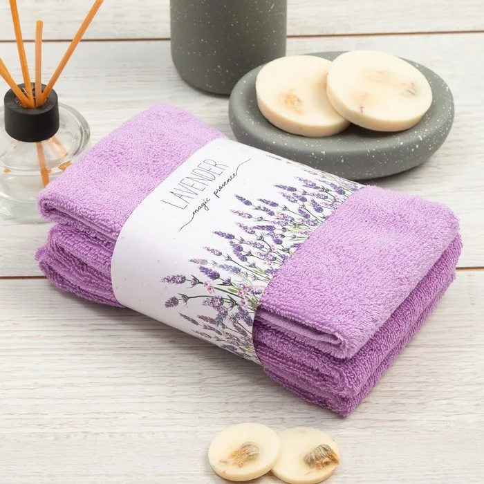 Набор махровых полотенец Этель Lavender 30х30 см - 3 шт, 340 г/м2, 100% хл
