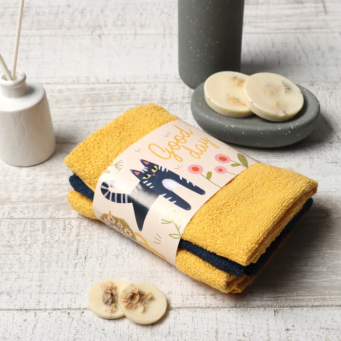 Набор махровых полотенец Этель "Кот в цветах" 30х30 см - 3 шт, 340 г/м2, 100% хл
