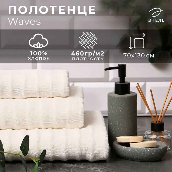 Полотенце махровое Этель "Waves" молочный, 70х130 см,100% хлопок, 460гр/м2