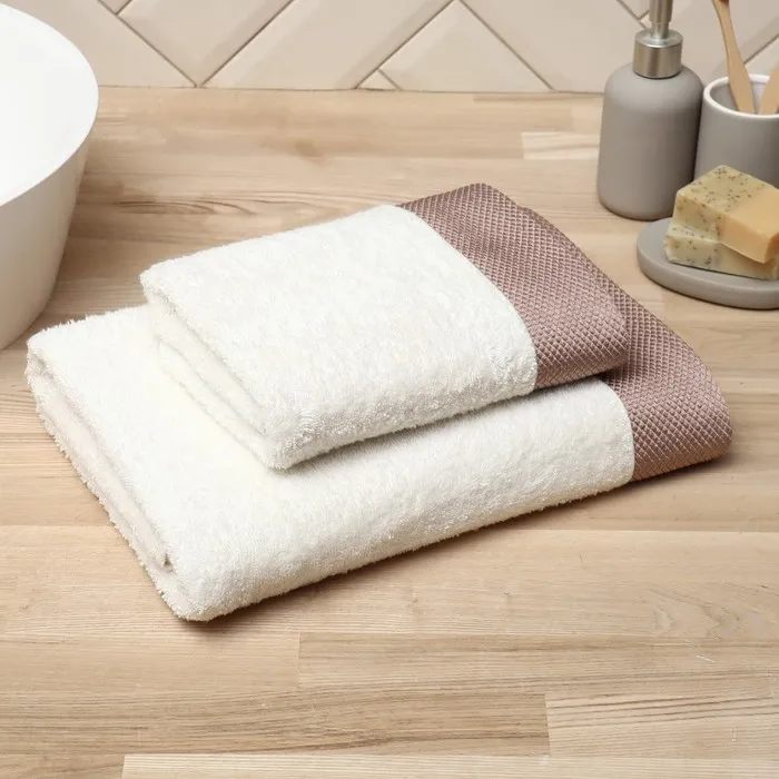 Полотенце махровое с бордюром 50х90 см, бежевый, хлопок 100%, 430г/м2