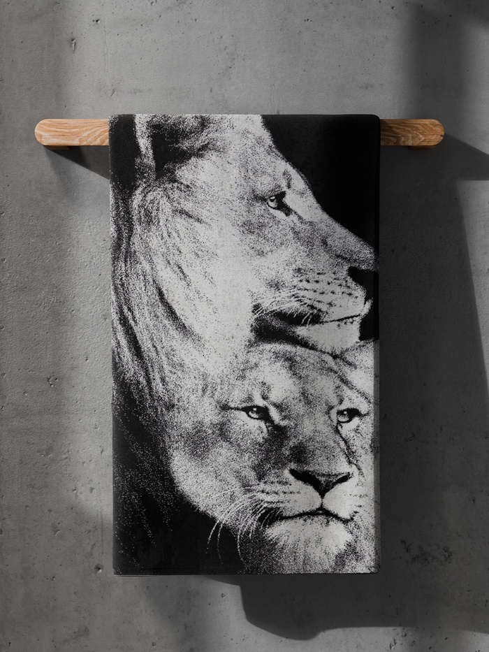 Полотенце махровое Этель «Львы» 70×130 см, 100% хлопок, 420 г/м², чёрно-белое