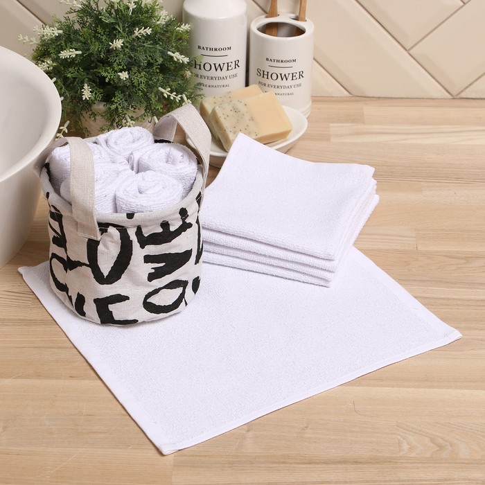 Набор махровых декоративных салфеток «Этель» Love, 30×30 см - 5 шт., хлопок 100%, белый