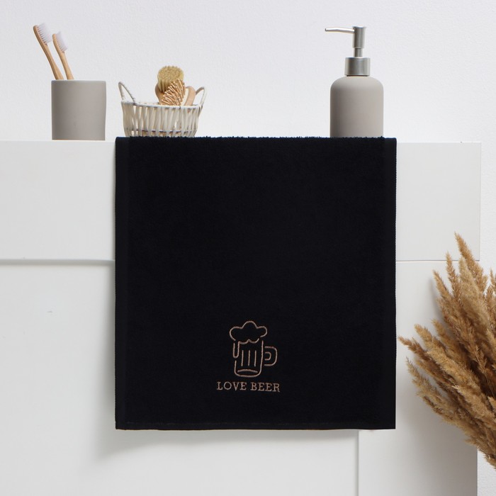 Полотенце махровое «Этель» Love beer, 35×50 см, хлопок 100%, чёрное