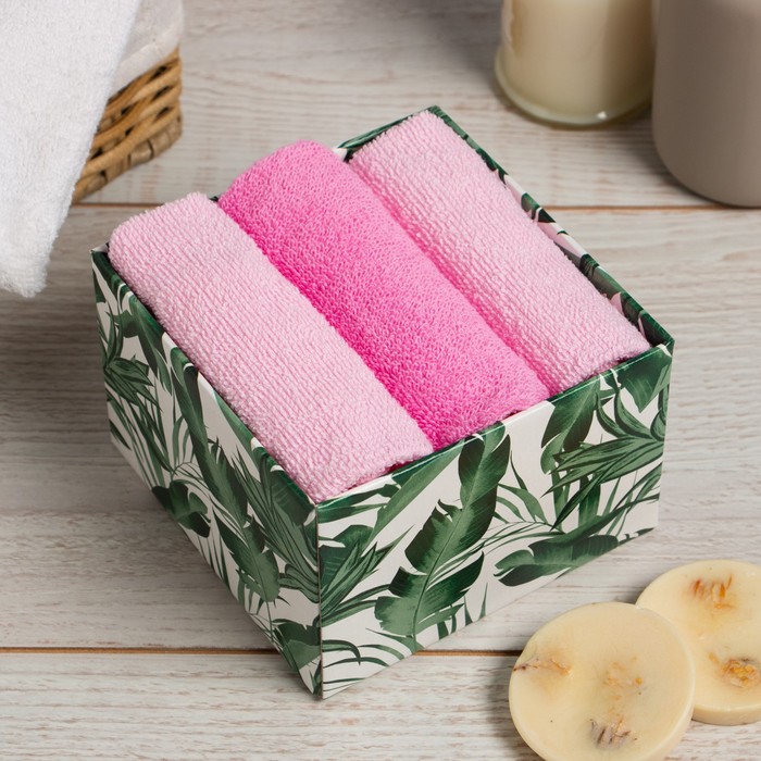 Салфетки махровые декоративные «Этель» Beauty, 3 шт., 30×30 см, хлопок 100%, розовые
