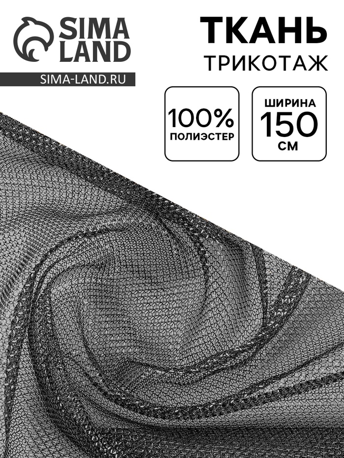Ткань трикотаж сетка, мелкая кольчуга, ширина 150 см, серебро на черном