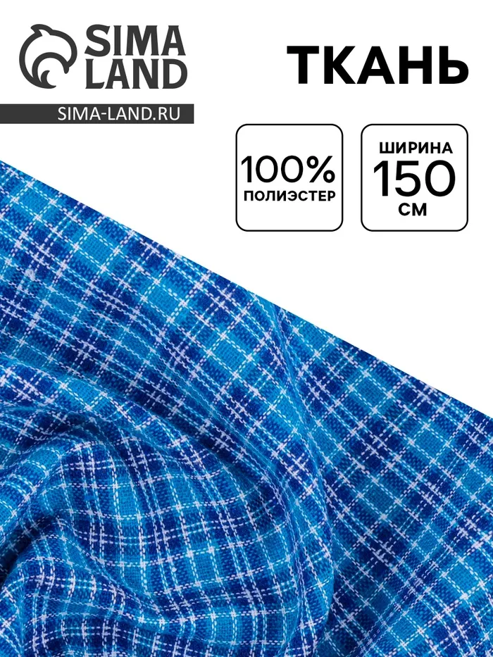 Ткань для рукоделия и шитья, в клетку сине-голубая, ширина 150 см