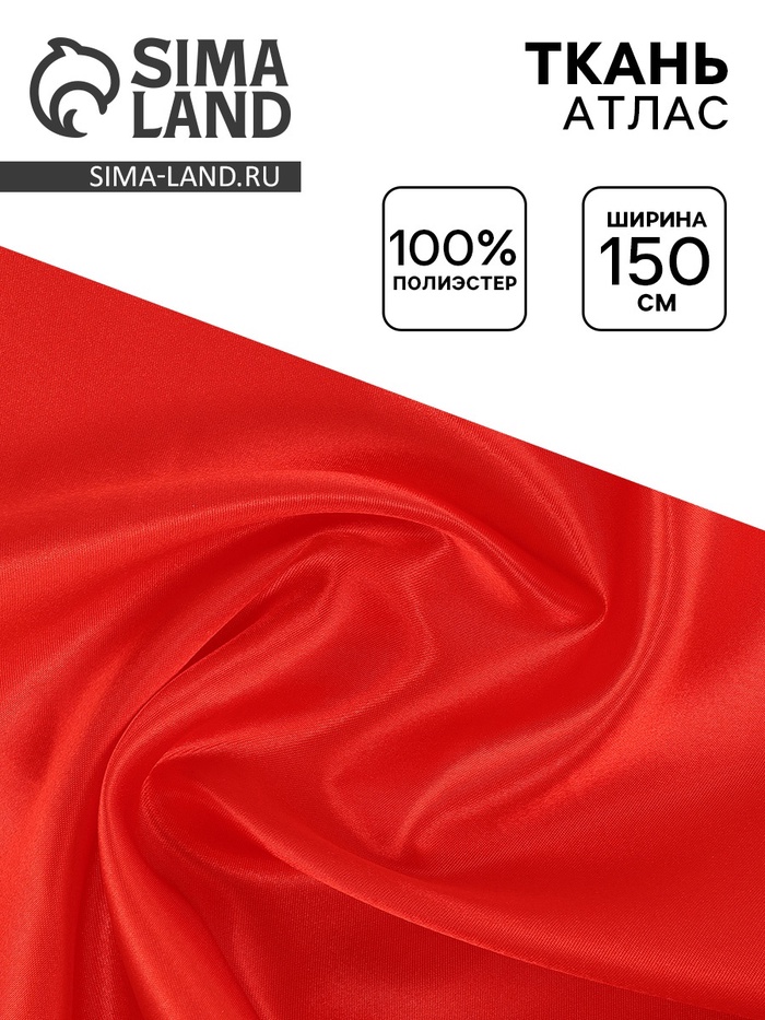 Ткань атлас для рукоделия и шитья, ширина 150 см, красная