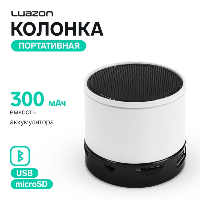 Портативная колонка LuazON Hi-Tech08, 3 Вт, 300 мАч, microSD, USB, белая