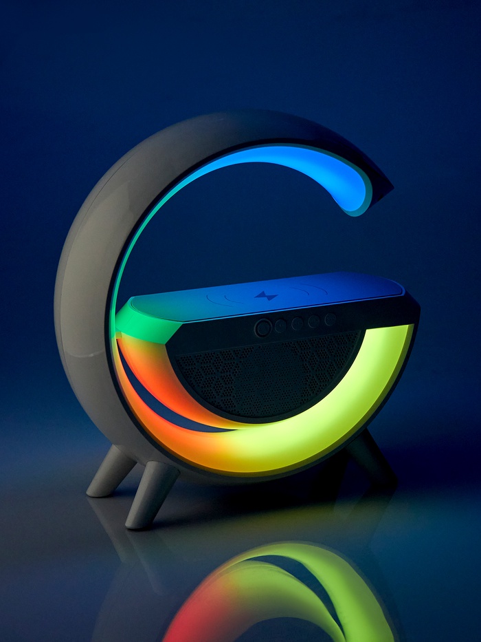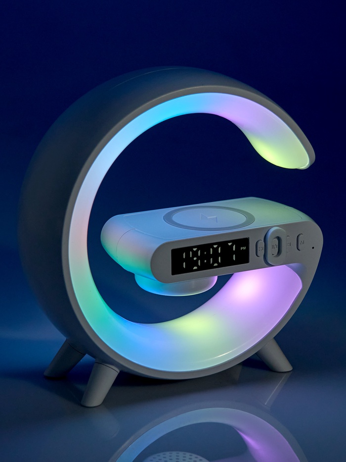 Портативная колонка - ночник G63, 15 Вт колонка, 15 W зарядка, 1800 мАч, подсветка, белая