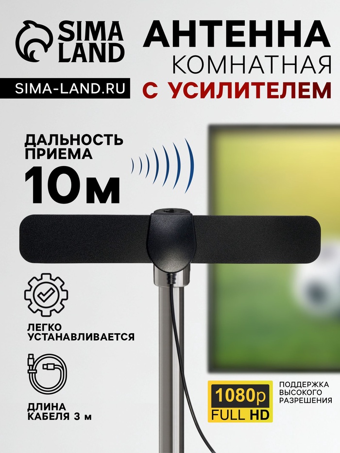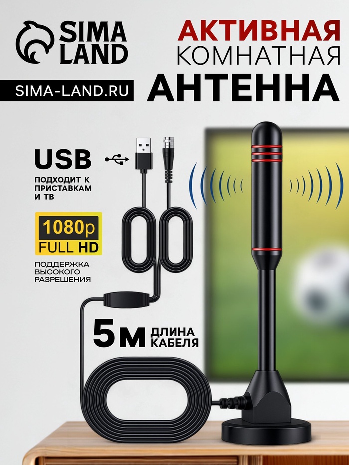 Антенна для телевизора с внешним усилителем, 5 В, DVB-T2, цифровая, комнатная, чёрная