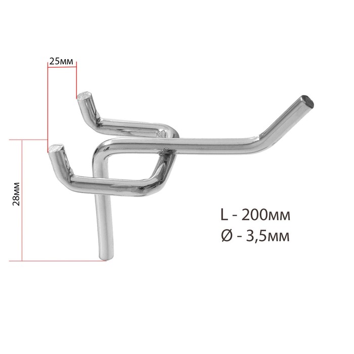 Крючок одинарный для металлической перфорированной панели, d=6 мм, L=20 см, шаг 25 мм, цвет хром