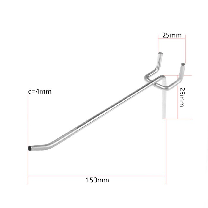 Крючок одинарный для металлической перфорированной панели, d=4 мм, L=15 см, шаг 25 мм