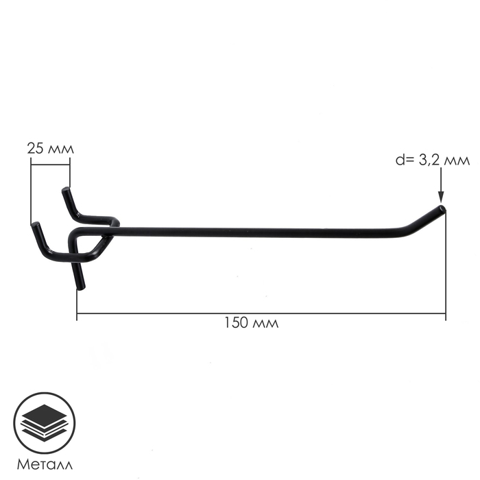 Крючок одинарный для металлической перфорированной панели, d=3.2 мм, L=15 см, шаг 25 мм, чёрный