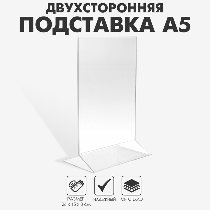 Двухсторонняя подставка А5, 26×15×8 см, оргстекло 1.5 мм в защитной плёнке