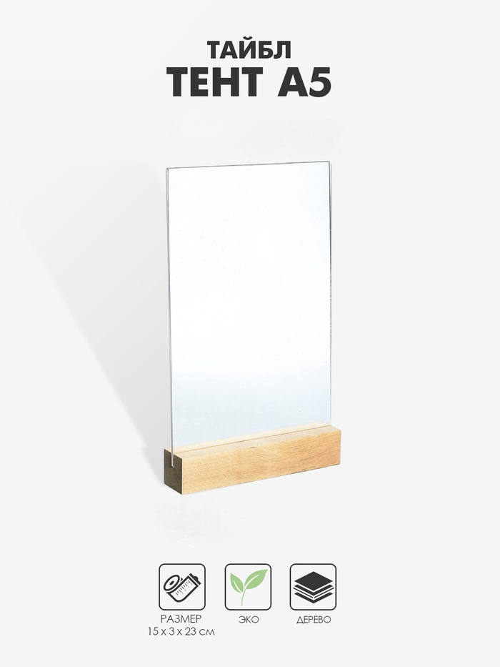 Тейбл-тент А5, оргстекло 2 мм, на деревянной подставке, 15×3×23 см