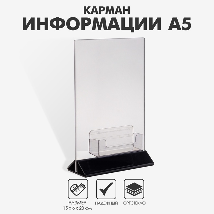 Карман для информации А5 (15×6×23) с визитницей (9,5×3×3) оргстекло 2 мм