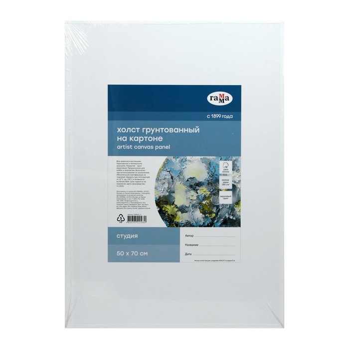 Холст на картоне «Гамма» «Студия», хлопок 100%, 50×70 см, акриловый грунт, мелкозернистый, 280 г/м²