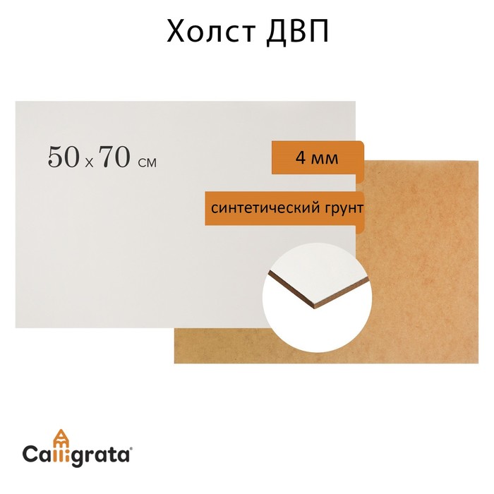 Холст на оргалите 4 мм, 50 х 70 см, хлопок 100%, акриловый грунт