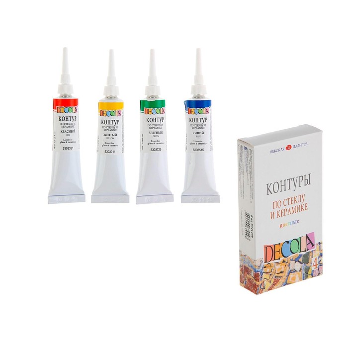 Набор контуров по стеклу и керамике, набор 4 цвета х 18 мл, ЗХК Decola, (5341409)