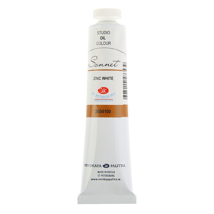 Краска масляная в тубе 46 мл, ЗХК "Сонет", белила цинковые, 2604100