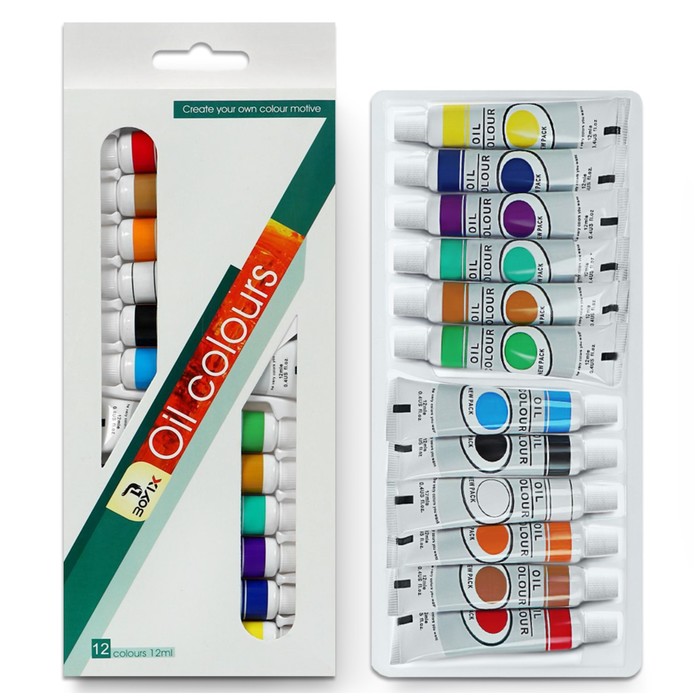 Краски масляные, 12 цветов, в пластиковой тубе, 12 мл, в картонной коробке
