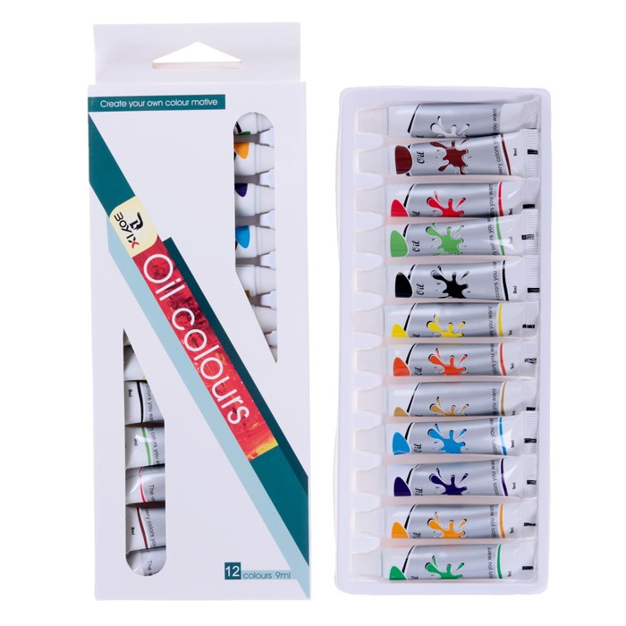 Краски масляные, 12 цветов, в пластиковой тубе, 9 мл, в картонной коробке