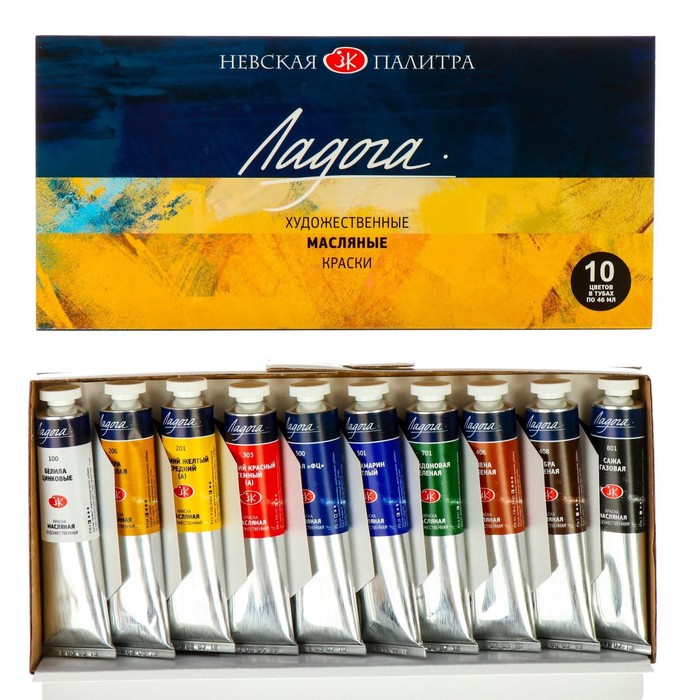 Краска масляная художественная, набор 10 цветов х 46 мл, ЗХК "Ладога", 1241006