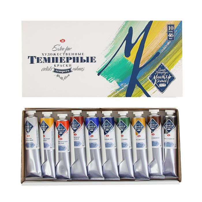 Краски темперные, набор 10 цветов х 46 мл, ЗХК "Мастер-класс", 1641032