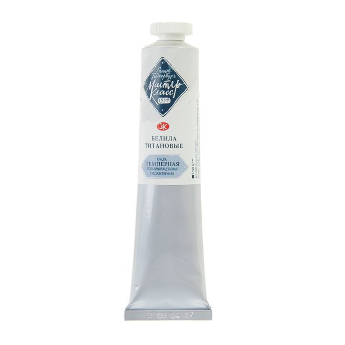 Краска художественная темперная в тубе 46 мл, ЗХК "Мастер-класс", белила титановые, 1604101