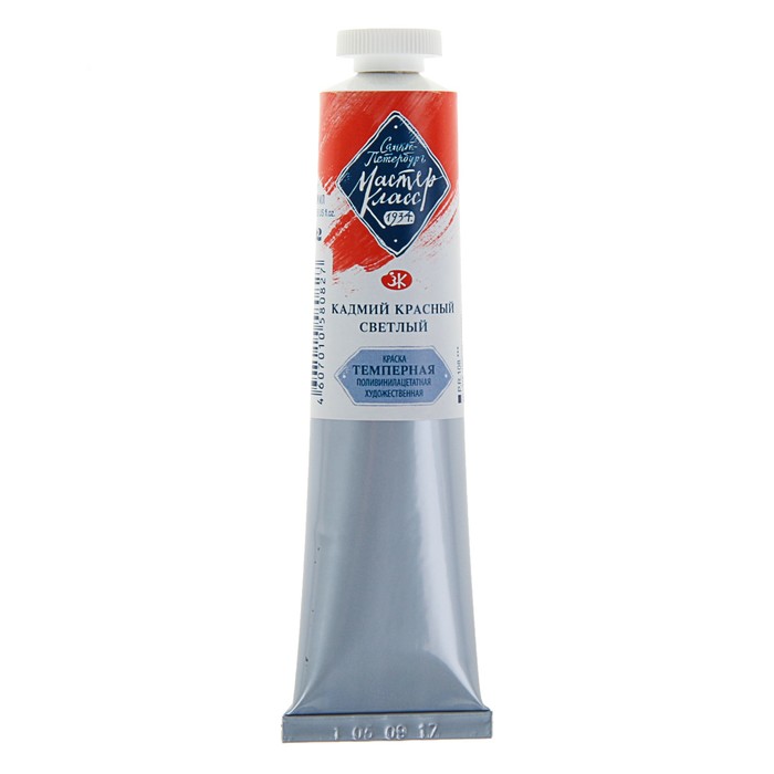 Краска художественная темперная в тубе 46 мл, ЗХК "Мастер-класс", кадмий красный светлый, 1604302