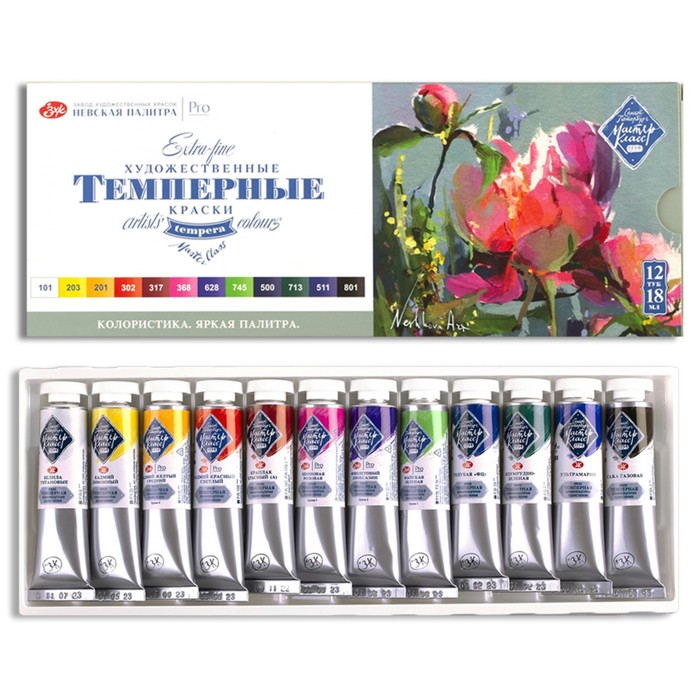 Краски темперные, набор 12 цветов х 18 мл, ЗХК "Мастер Класс" Колористика. Яркая палитра, 16412282