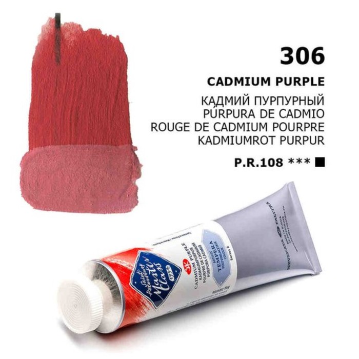 Краска художественная темперная в тубе 46 мл, ЗХК "Мастер-класс", Кадмий пурпурный, 1604306