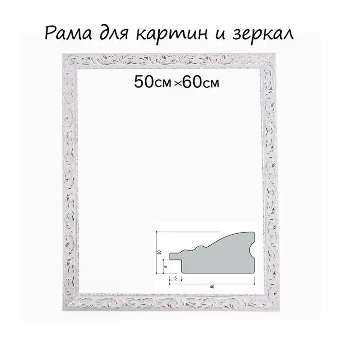 Рама для картин (зеркал) 50 х 60 х 4 см, дерево "Версаль", бело-серебристая