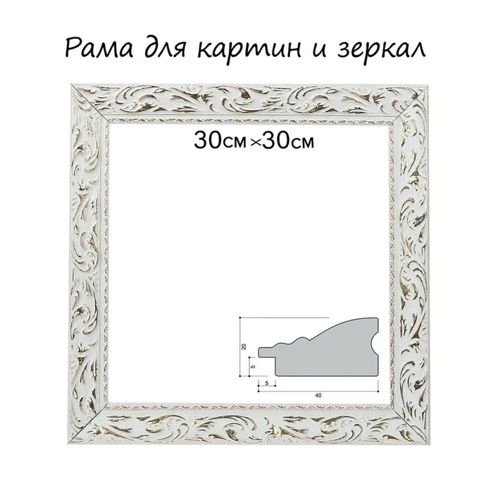 Рама для картин (зеркал) 30 х 30 х 4 см, дерево "Версаль", бело-золотая