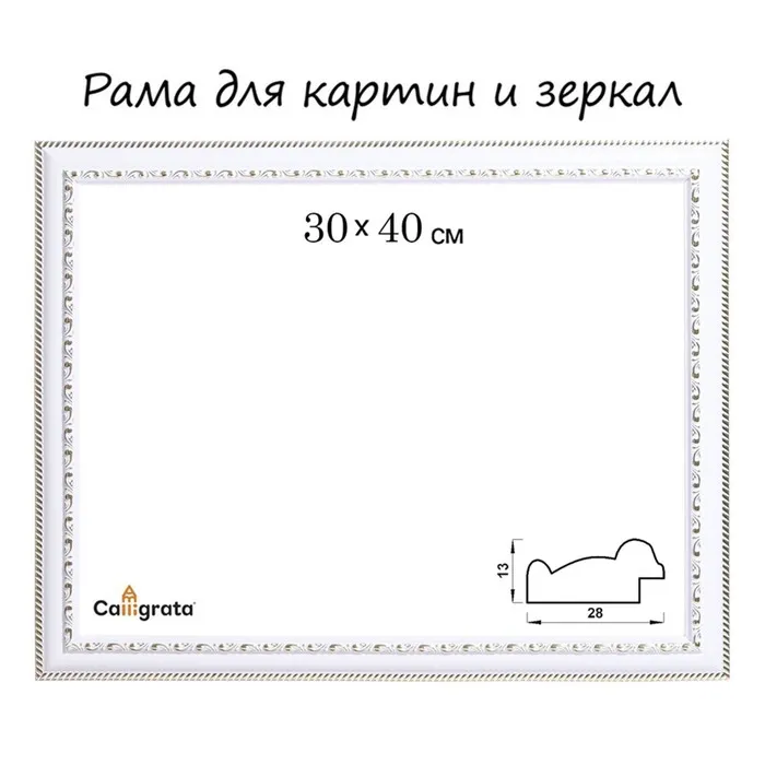 Рама для картин (зеркал) 30×40×2.8 см, пластиковая, Calligrata белая/золото