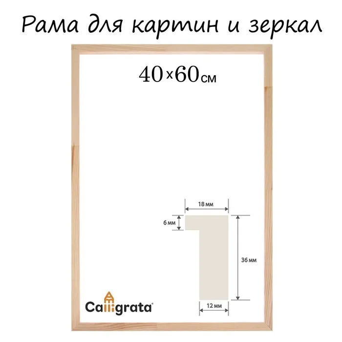 Рама для картин (зеркал) 40×60 см, профиль 18×36 мм, Liam, неокрашенное дерево (подходит для декорирования)
