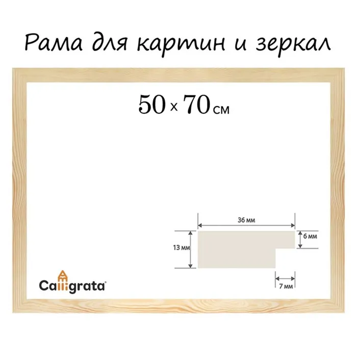 Рама для картин (зеркал) 50×70, см профиль 13×36 мм №1 неокрашенное дерево, (подходит для декорирования)
