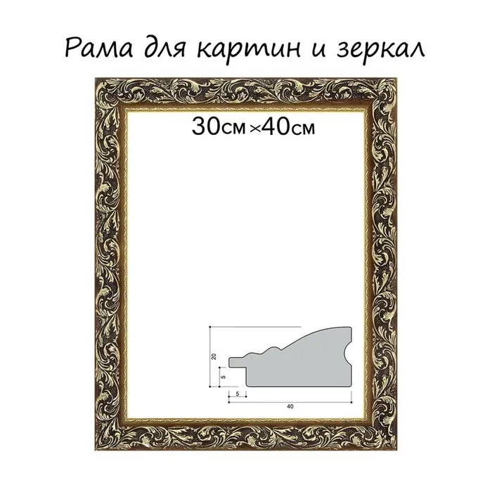 Рама для картин (зеркал) 40×60×4 см, дерево «Версаль», золотая