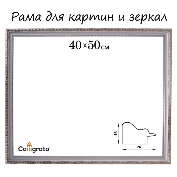 Рама для картин (зеркал) 40×50×2.6 см, пластиковая, Calligrata 6429, белая-золотая