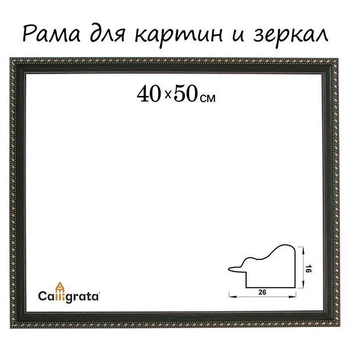 Рама для картин (зеркал) 40×50×2.6 см, пластиковая, Calligrata 6429, тёмно-зелёная-золотая