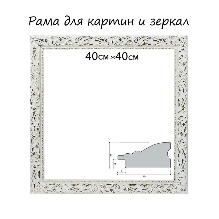 Рама для картин (зеркал) 40×40×4 см, дерево «Версаль», бело-золотая