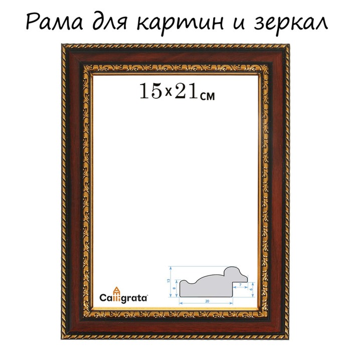 Рама для картин (зеркал) 15 х 21 х 3,0 см, пластиковая, Calligrata 6448, бук